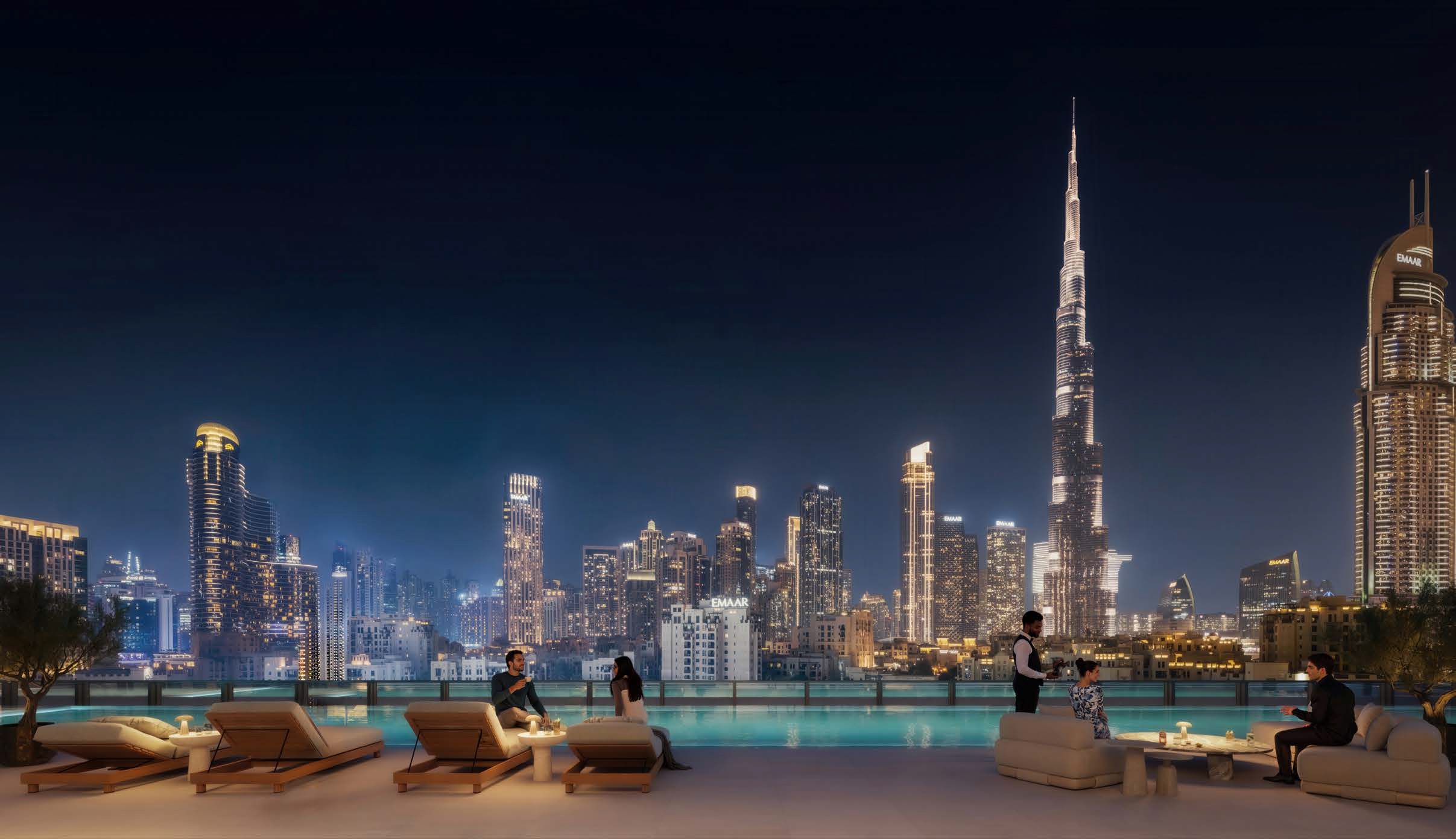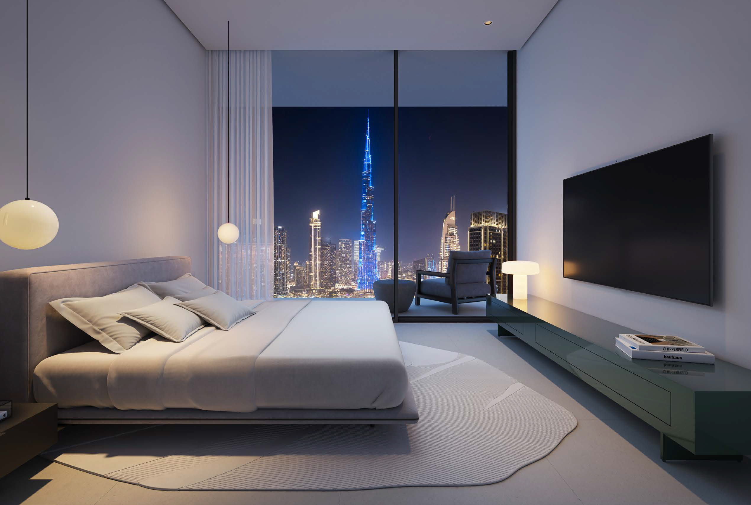 Residences are positioned on a permanent Burj Khalifa view corridor, offering cinematic vistas of the Burj Khalifa, Dubai Fountain, and the Business Bay skyline.